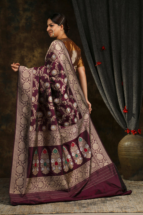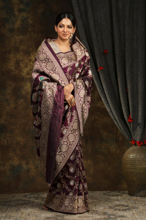 Purple Banarasi silk Saree